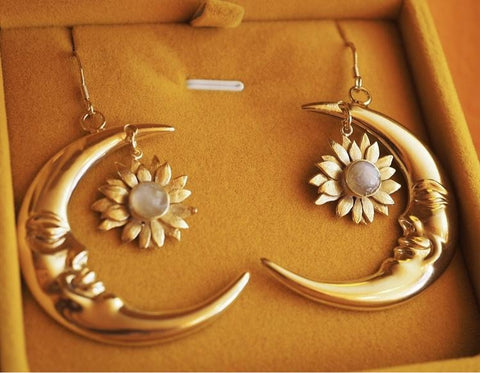 Crescent Moon Sunflower Earrings