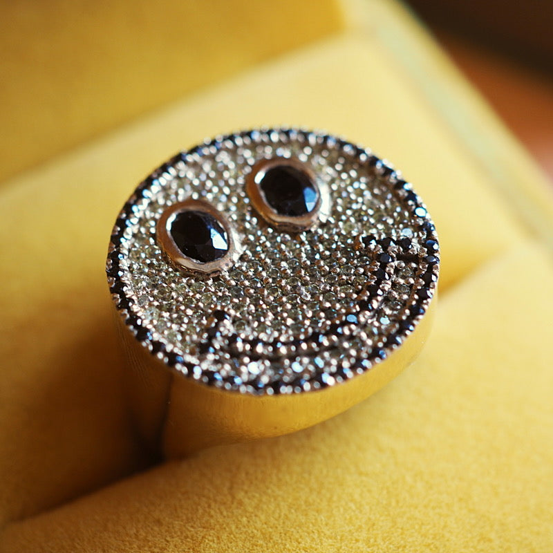 T H E ONE-OF-A-KIND C O L L E C T I O N is inspired by Reo's world travels, from India to South America and the vast collection of precious stones she has collected along the way. Fusing modern trends with traditional methods Reo has created some exquisite one-off beauties that are featured and available to buy here. This one-of-a-kind ring is inspired by ibiza and the iconic acid house raves of the 90s. It is produced in sterling silver with 18ct gold plating and set with a selection of black spinel and yellow citrine. Each piece is hand made in my Margate studio and is as unique and individual as the craftsperson that made it and the customer who buys it.